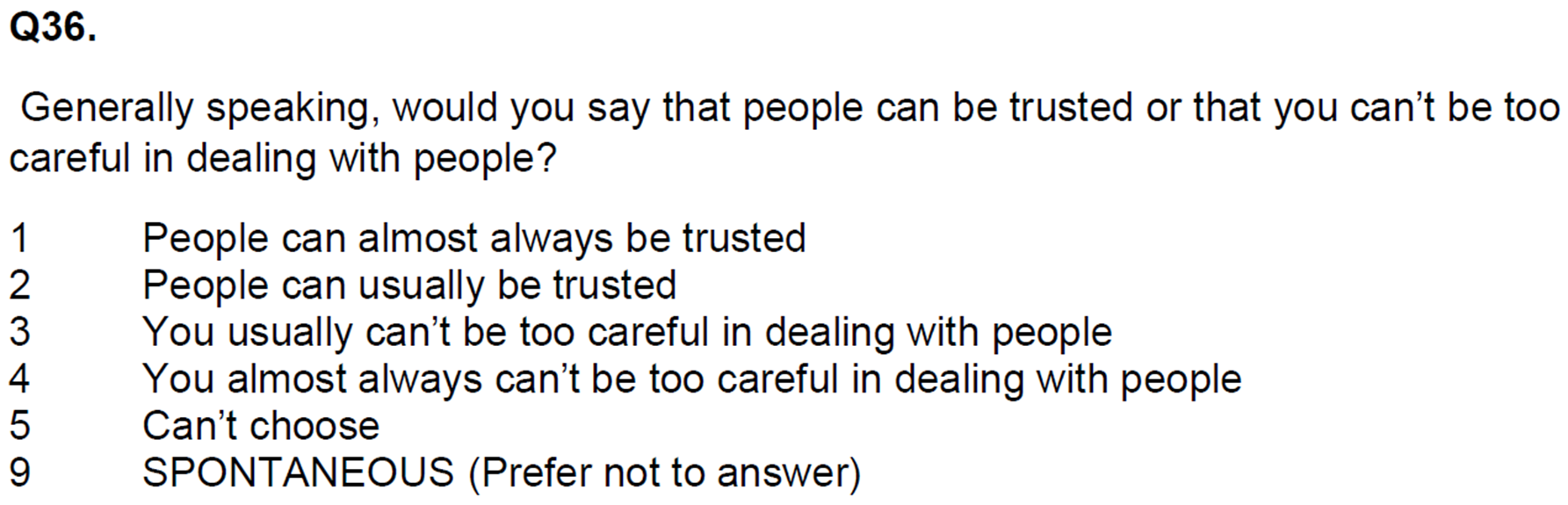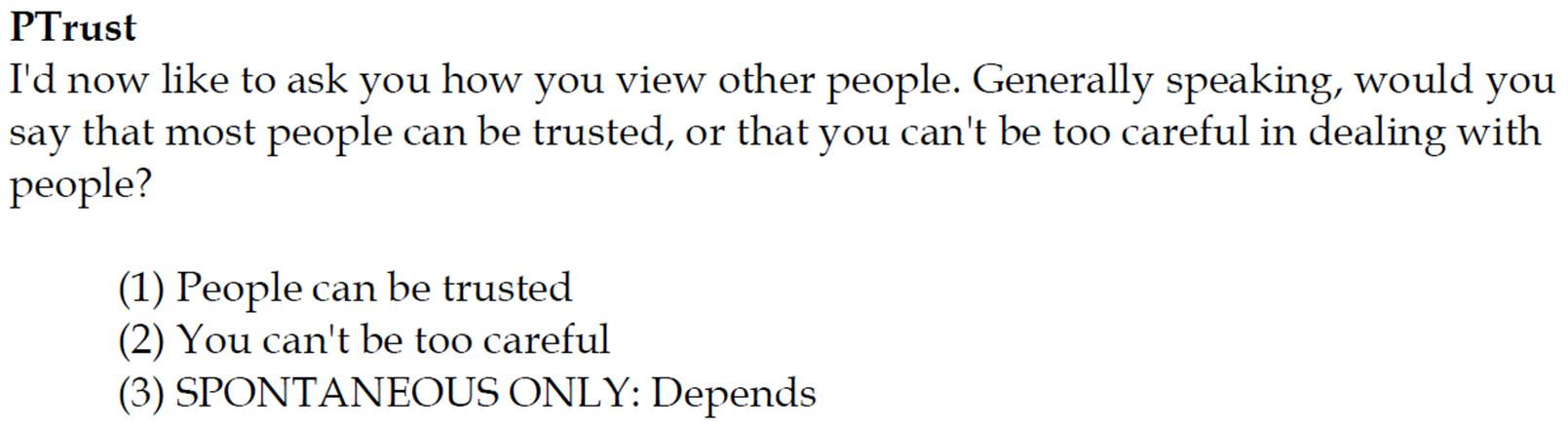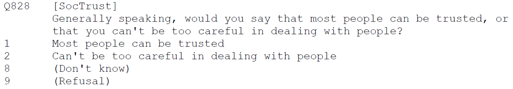 In this exercise, explore the assignment dataset using the Variable search function on the website to identify any available variables for answering one/some of the questions below, and check how the implied dependent variable was measured: