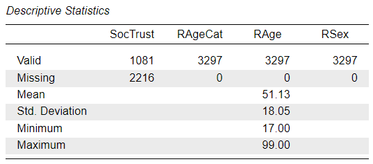 Identify the variables you want to use and provide some summary descriptive statistics for them;